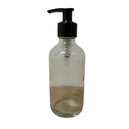 Cierre: Bomba dosificadora plástica color negro, estándar 28/410, con tubo dosificador ajustable según la altura del envase.